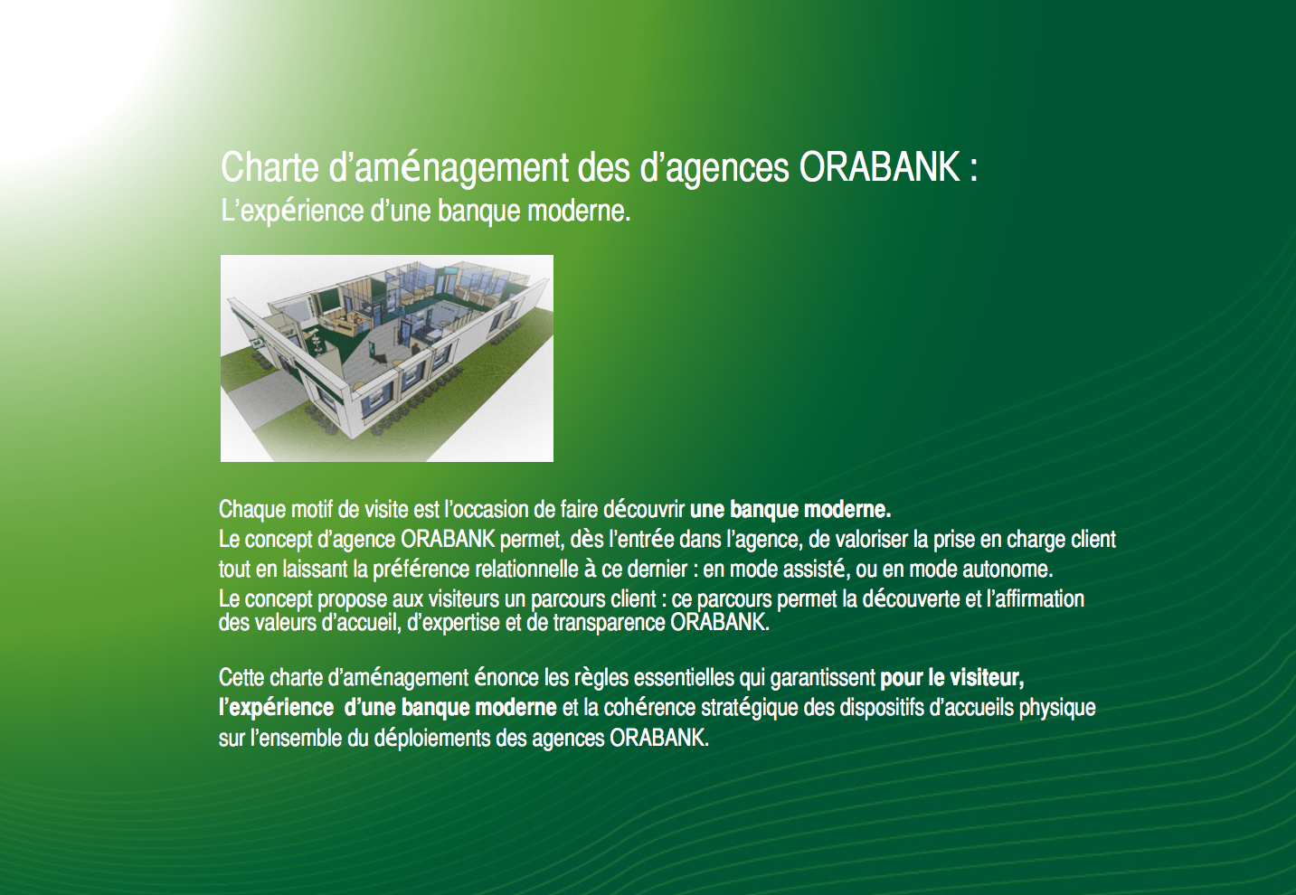 Création graphique charte d’aménagement des agences Orabank